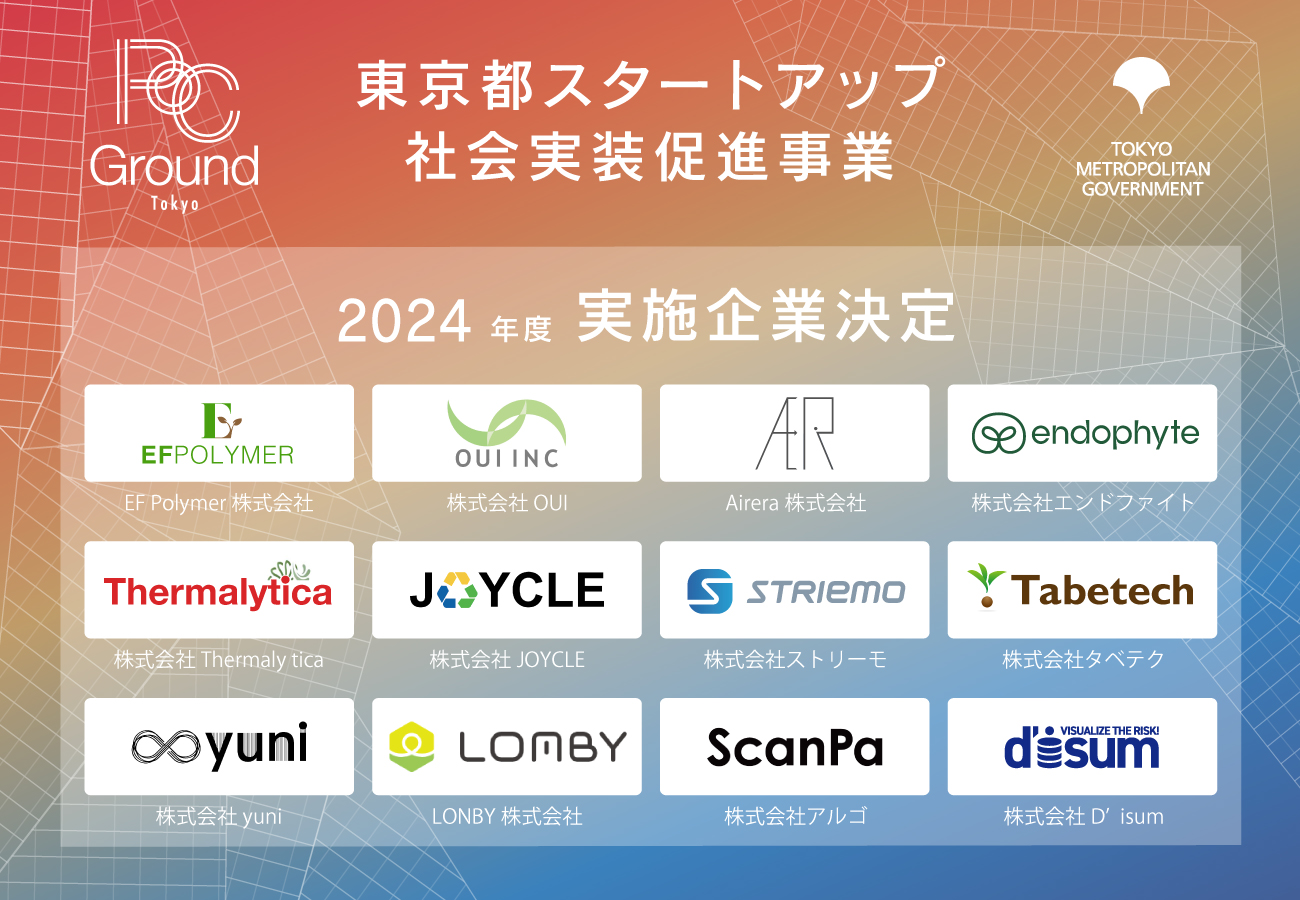 「WakuWaku the World」をミッションに掲げ、挑戦者が挑戦者であり続けられる世界を目指す株式会社ボーンレックス(東京都千代田区、代表取締役 室岡拓也 以下、当社)が、東京都より受託し、運営を行っている「東京都スタートアップ社会実装促進事業(PoC Ground Tokyo)(以下、本事業)」は、このたび令和6年度採択事業を決定いたしました。
